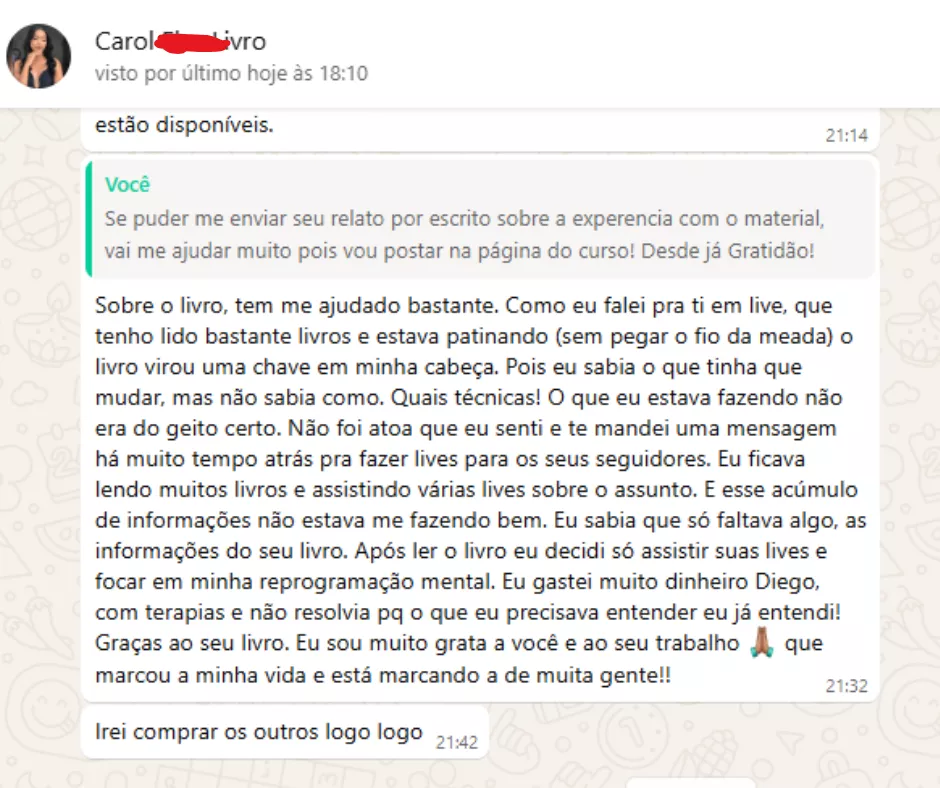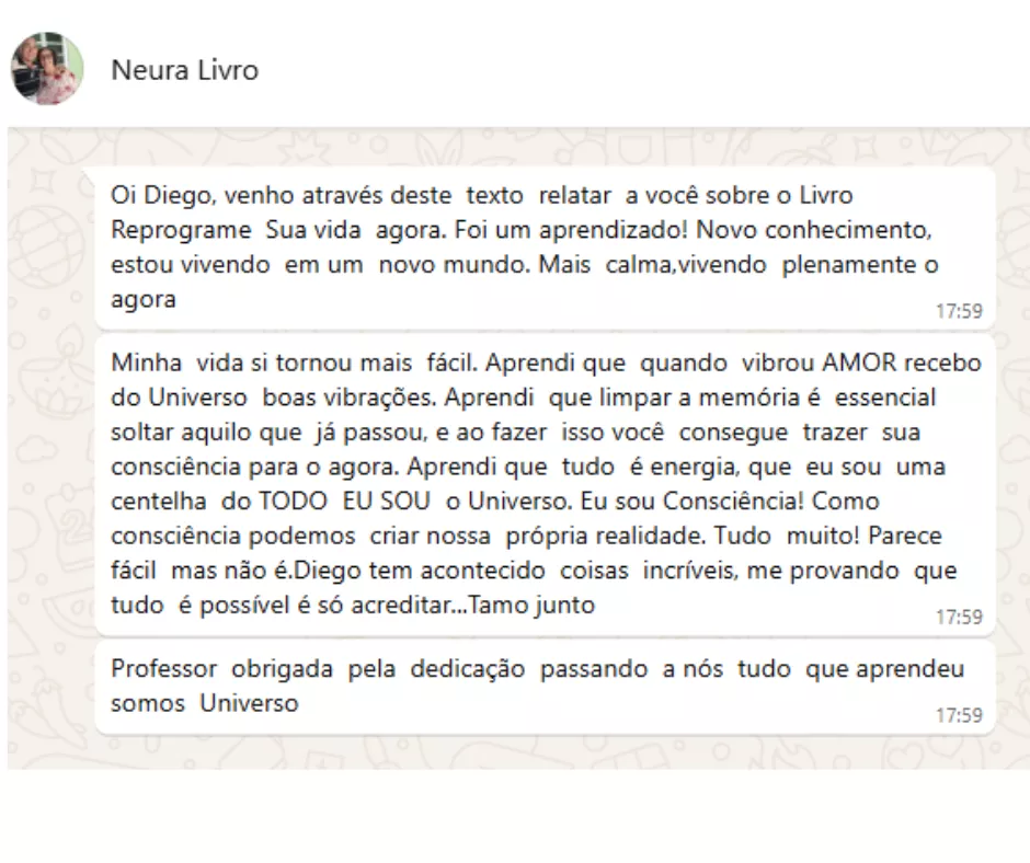 Diego é mentor com mais de 45 mil seguidores, autor de 3 livros e especialista em Despertar da Consciência e Reprogramação Mental.